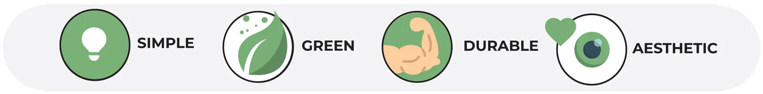 The bench makes use of rain water while keeping the seat dry. Rainwater (denoted by blue) is sent to a gutter type system at the base of the seat where it is channeled into the side of the bench where the vertical garden would be located if there is no vertical garden it will simply run off to the ground, keeping the seat dry.